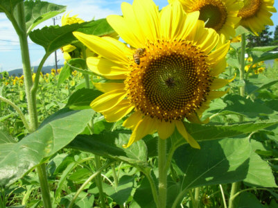 ひまわりが夏の青空に映える・・