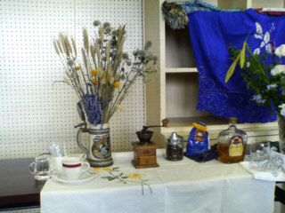 花を抜きそばのビンなどで構成