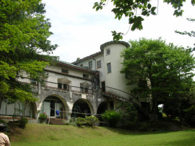 緑がうっそうとしている古い建物のそばで