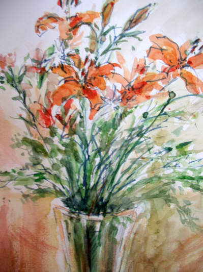 <花>6F・水彩・ペン(トライアングル万年筆)