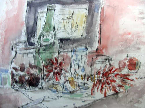 静物スケッチ2点&画材店「世界堂」 |