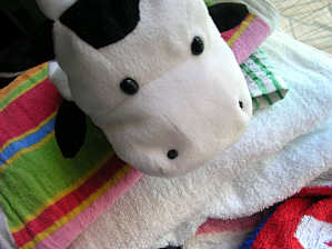 積み上げられた洗濯物の上から・・