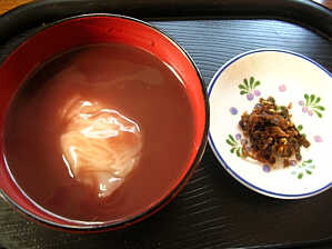 <鏡餅を割り(切り)汁粉にした・・>