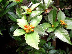 <色づき始めた千両>