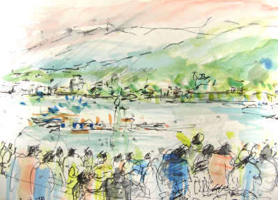 <諏訪湖・花火大会を待つ>スケッチ