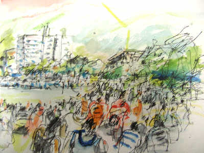 諏訪湖花火大会を待つ人々・スケッチ
