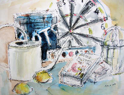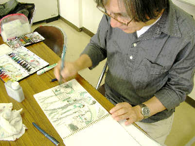 <カンジ先生スケッチ彩色する> 毎日更新のブログのスケッチ(珍しく)ネタ切れとの事。 でも、頭が下がります・・・ <neppaは猫だまし的ブログになりつつある・・・