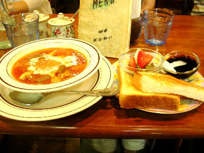いつものコロラドが満席で香房(コーヒー専門店)へ なかなか良い雰囲気! <ビーフシチュー・セット> ¥1,150 カンジ先生のアートフォーラムの話 Ogさんのカプリ島(イタリア)スケッチの話 <Okさんが真鶴?と・・先程突っ込んでた? などなど・・・ 愉しい話・美味しい食事・・