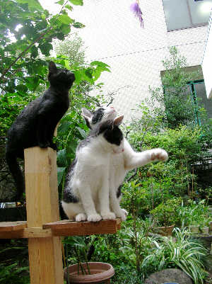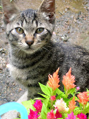 <涼しい?> "サボ”♀ <ウン?何か御用?>”ツナ”♂ <ケイトウと僕>”トラ”♂