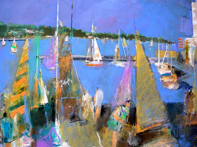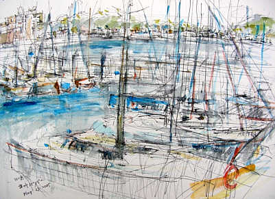 <江ノ島ヨットハーバー‘90>アクリル水彩・全紙