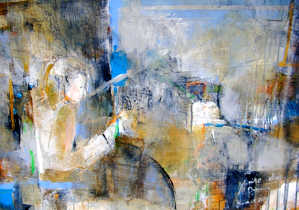 ふと、目に入った車内の女性のクロッキーから描き起こしました。以前から描いていた作品が気に入らず、直前に描きなおしました。