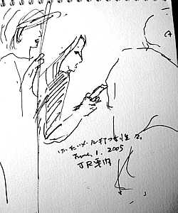 クロッキー<メールを打つ女性>