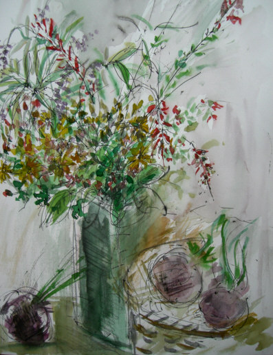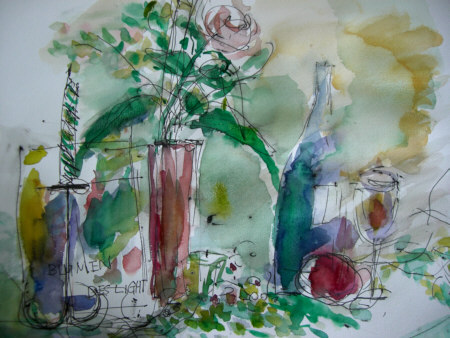 『ハーブのある花』6F水彩ペン