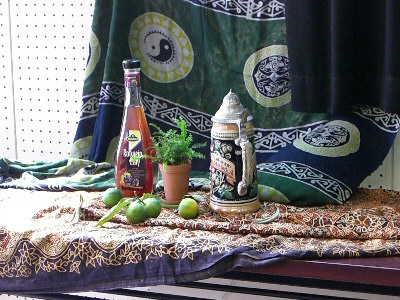 エスニックなワインのビンと水差し