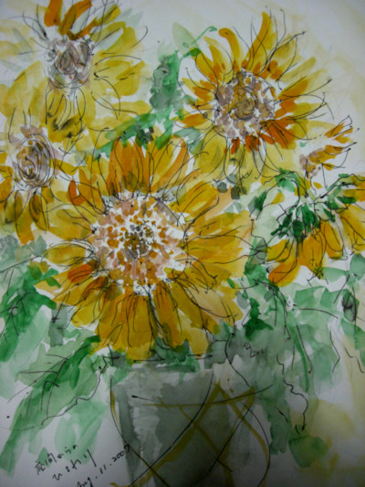 座間からのひまわり〜スケッチ&コメダ珈琲のカキ氷 |