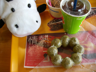 OSCで2次会・・先ほど来れなかったKさんが来た!! 風邪声がアイスでスッカリ治っていた〜良かった <ミスドーのポンデ抹茶&サーティ・ワンアイス> 『情熱・・?』うふふ・・意味深