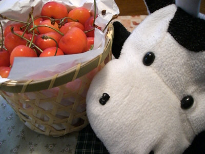 うちに帰ったら・・ おいしそうな物が届いていたよ・・「佐藤さん」じゃなくて 「紅秀峰」という名前のさくらんぼなんだって・・ ほんのり甘くて美味しかった!!