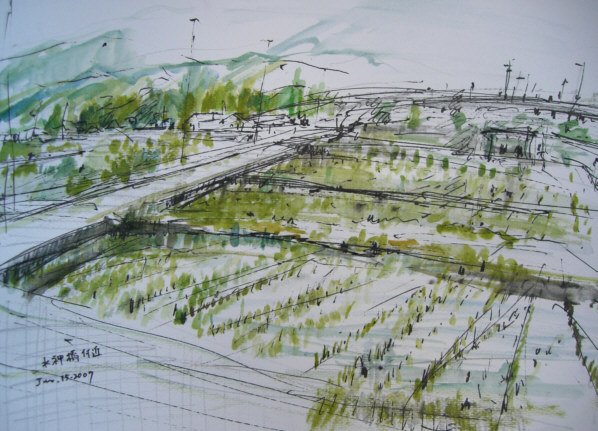 <水神橋付近>スケッチ6F水彩ペン
