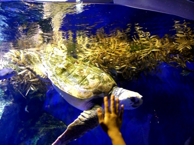 <海がめ触る・・?>
