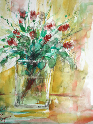 <薔薇のスケッチ>6F水彩・ペン