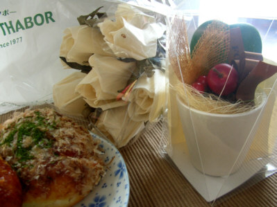 お世話になった方に差し上げる小さな鉢植えと、近くの「モンタボー」で美味しいパンも買った・・