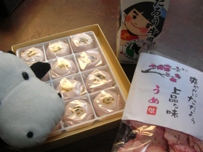 お土産には『梅饅頭と梅味チップス(これ美味)・牛乳』