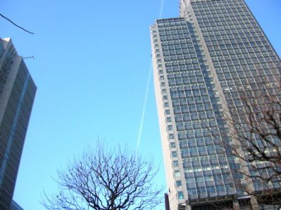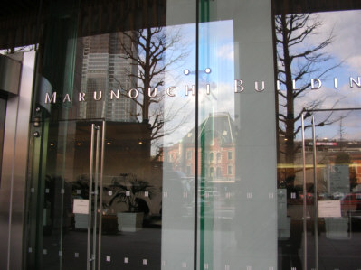 『丸ビル』左ともうすぐ完成真近の『新丸ビル』の間