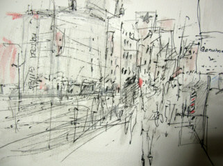 チョっくらスケッチ・・人通りが多く覗いていく人もおり