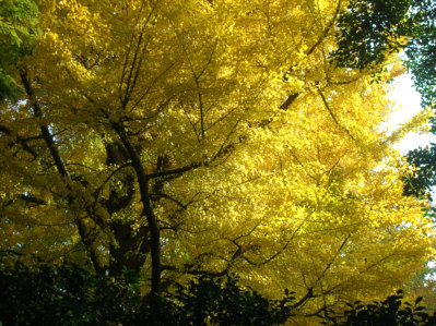 帰り、総合公園に寄った・・空が高く、<総合公園の銀杏の木>見事に黄金色・・目にくらっと来るくらい(笑)鮮やかだった。