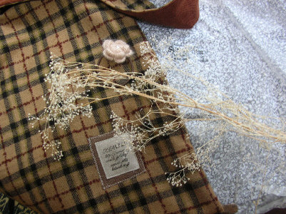 『肩掛けの茶色のチェックのバッグ』と『毛糸の髪飾り』を買った