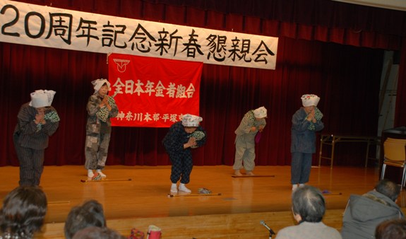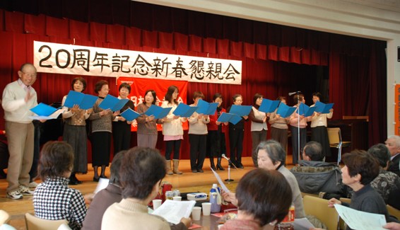 臨時大会の後、支部結成20周年記念・新春懇親会が開かれ組合員による各サークルごとの歌、舞踊、マジックや三味線などのお披露、お楽しみの懇親会となりました。