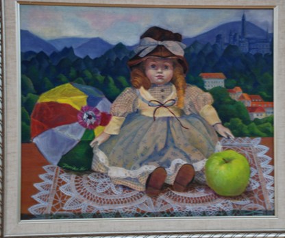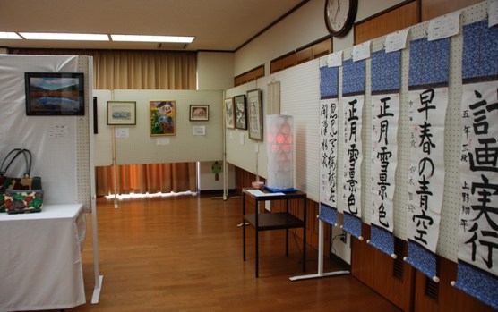 絵画、写真、陶芸、生け花、書など出展された作品は47点(1人1点)で午前中は近所の人が三々五々、見に来られていました。