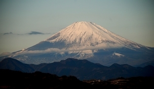 箱根連山を茜色に染めて落ちて行く夕陽・・吾妻山の夕景