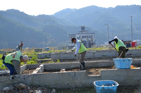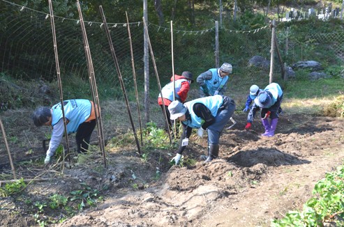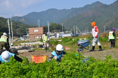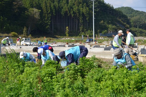 10月22日の作業・・・仮設住宅のそばの「大槌まごころ農園」に35名、思い出返し隊1名