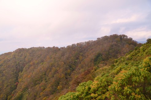 お天気は木の又小屋の辺りから陽が差し始めた明るくなったが富士山のある西の空は雲がかかったままだった。 下山をのんびりし過ぎて途中で三の塔尾根下山を烏尾尾根下山に切り替えたが 烏尾尾根は急で初心者もいて思ったより時間がかかり下の林道に17時、日が落ちて真っ暗になった林道を懐中電灯で照らしながら歩き風のつり橋を渡りバス停に着いたのは(1時間との表示でしたが)18時13分だった。
