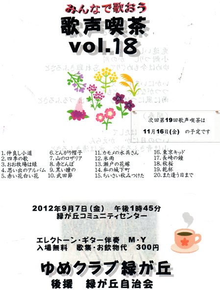 来週の歌声喫茶、演奏曲のお知らせ | ||