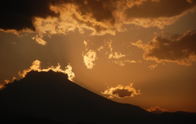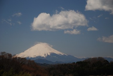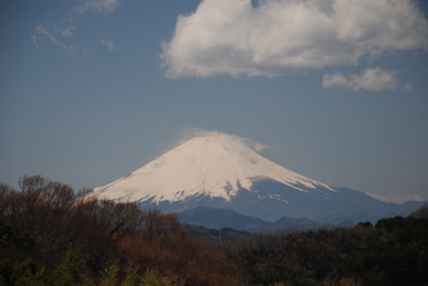雨上がりの春の雲が湧いては消え消えては湧いて富士の頭の雲がなかなか離れない。