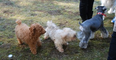 だいたいの犬は他の犬と仲良く遊んでいますが中には飼い主から離れない犬、他の犬が近ずくと吠える犬、他の犬が近寄って来るとこわごわ飼い主の陰に隠れる犬、それでいて飼い主が抱っこした途端、飼い主の腕の中から他の犬にほえる犬、実に様々で犬社会も社交性、協調性が問われているようです。