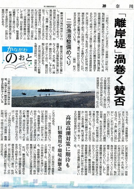 梅沢海岸「離岸堤」渦巻く賛否・・と神奈川新聞記事 |