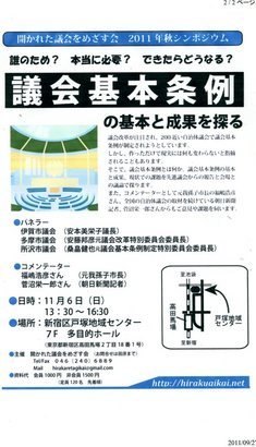 2011/09/27 19:30:51|開かれた議会をめざす会 | |