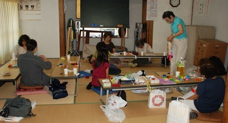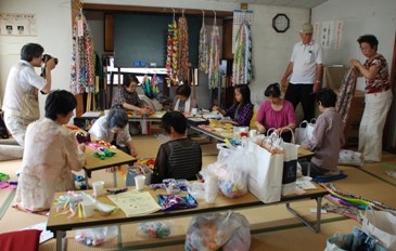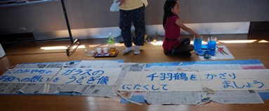 千羽鶴を糸でつなぐボランティア作業・1日目 | ||