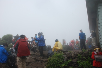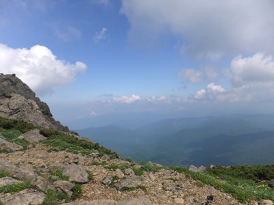 山頂に着いてから食事にしようと空腹のまま登ったら途中から軽いめまいがして来て(無理なら引き返そうかとも思ったが)少しずつ食べながら治って来たのでゆっくりゆっくり登った。山頂近くは一面、お花畑、2合目辺りからはウスユキソウも可憐に咲いていました。苦しんで登っただけに下山は心地よい風を味わう事が出来た。みんな下山して私が降りる頃は人も少なく下から吹き上げる風が涼しく気持が良かった。