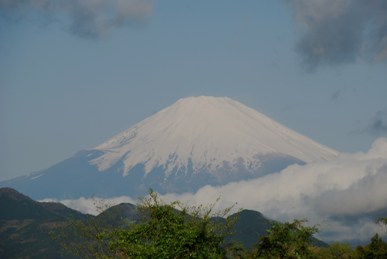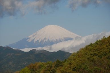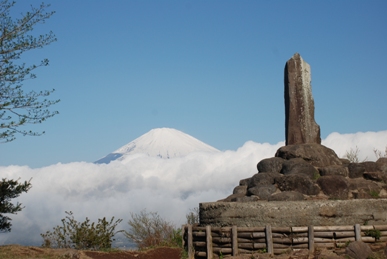 知らずに登った若い女性の二人も写真を撮ってから帰る事にしたというが かかっていた笠雲がだんだん富士山とくっかり、周りの雲も広がって箱根方面から吹き上げて来るガスで時々見えなくなったりしながらもシャッターを押しました。