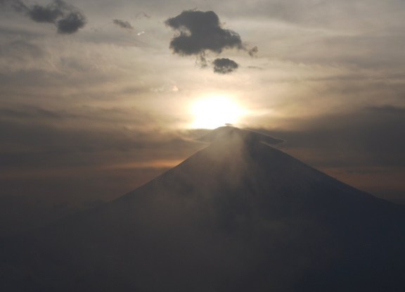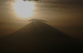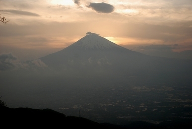 雲に邪魔されたダイヤモンド富士でした。日没18時頃。