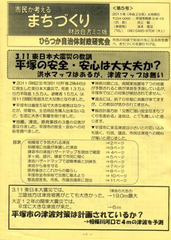 今、原発や津波対策が問題になっていますが湘南の各自治体は津波無しか想定を3〜4メートルにしています。しかし実際には過去に関東大震災で鎌倉は5〜6メートの津波が押し寄せています。