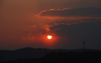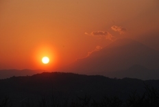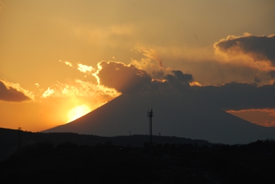 写真は緑が丘からの箱根方面、鉄塔の後ろが富士山のはずです。今日も雲に覆われています。30日19時40分頃。