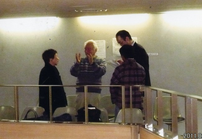 写真はあの時、赤倉さんに撮って貰ったもので背の高い佐藤記者の質問を受けているのが私です。