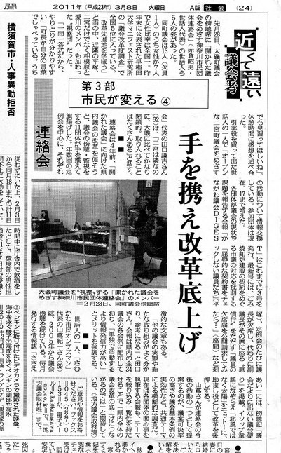 「議会が変われば町(市)が変わる。」市民が力を合わせて行く事が議会を変える力になると思って頑張っています。 以下は神奈川新聞記事の引用です。