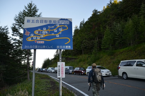 朝、登山口付近の駐車場が一杯で4合目半あたりに路駐し(5時30分、これは警備員の指示によるもの。)五合目レストハウス登山口まで20分ほど歩いた。