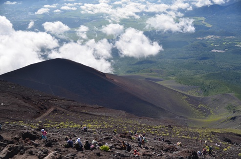 富士山本宮山頂(12:50下山)→後来光荘(新7合目7:13着・14:16発)→略→五合目